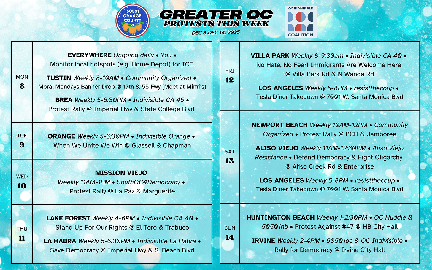 📅 Weekly OC Protests & Actions (Dec 8–Dec 14, 2025)
