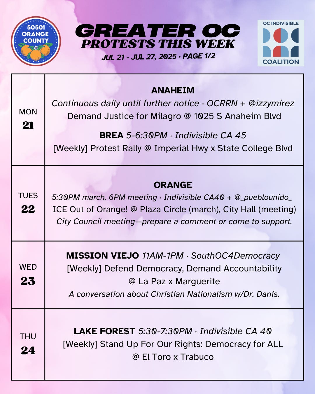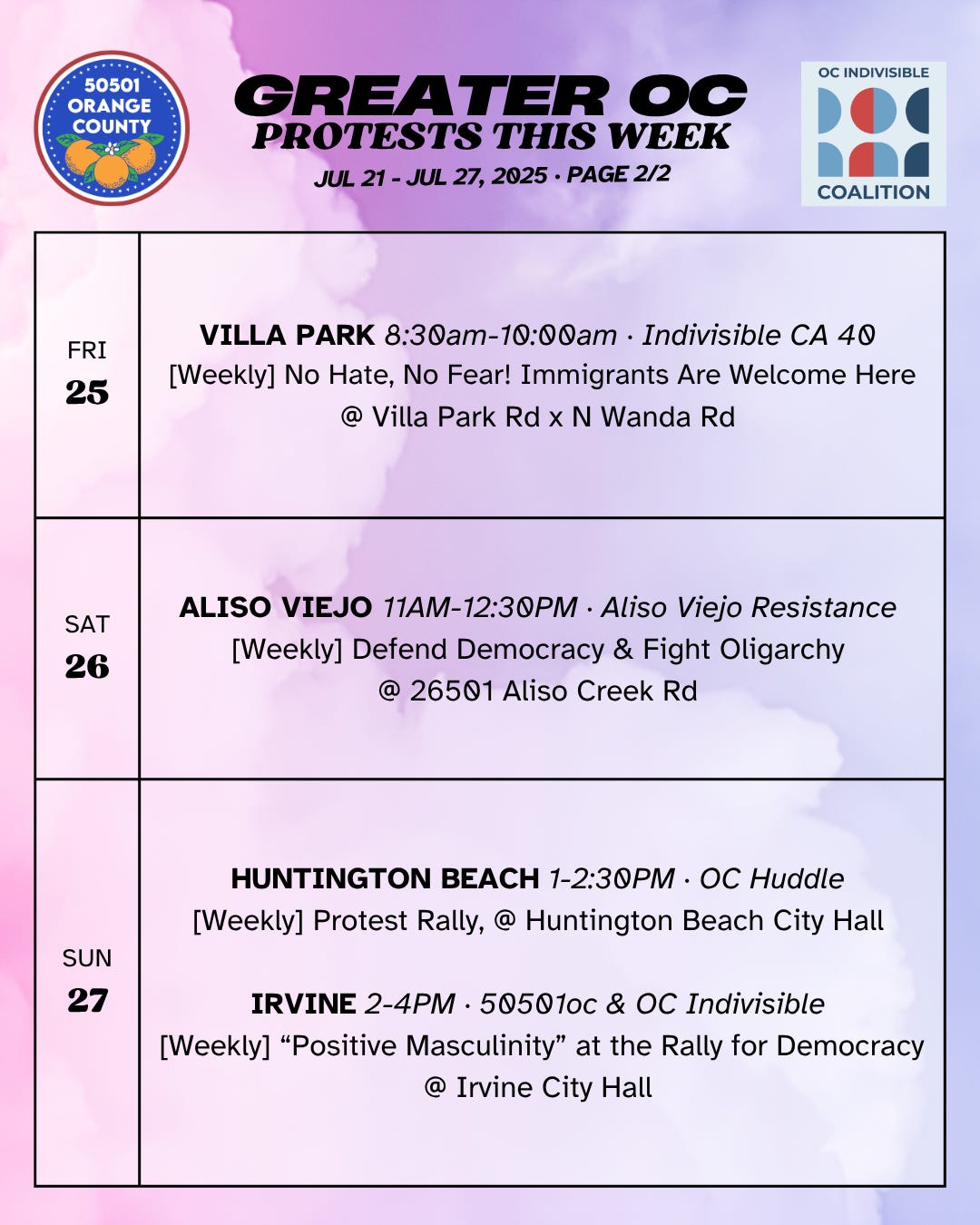 Dear Greater Orange County: Looking for more protest opportunities this week? We have options for you! (Jul 21 - July 27, 2025)