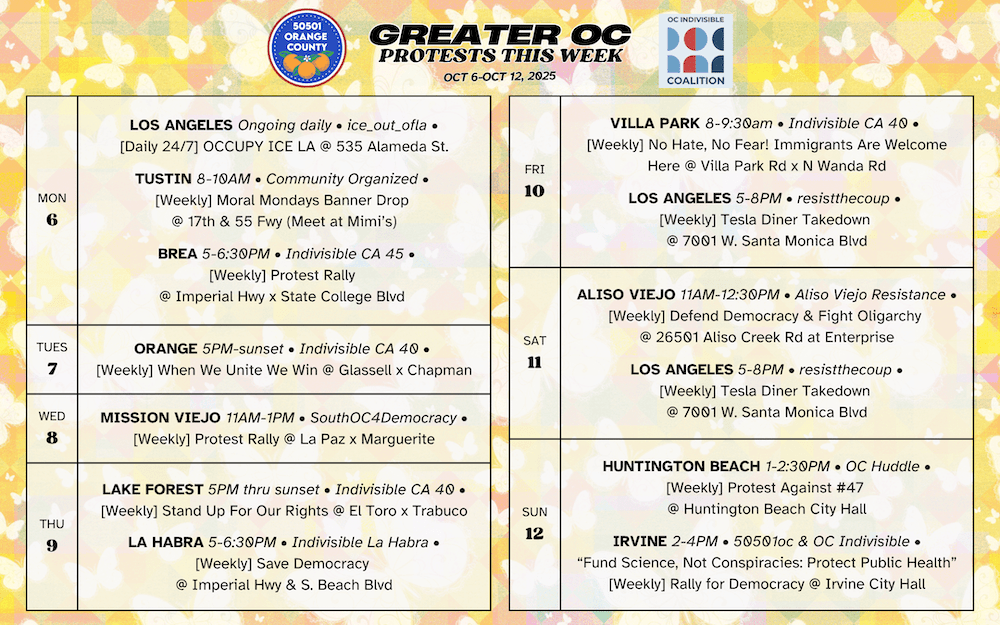 Greater OC Protests This Week (Oct 6-12, 2025)