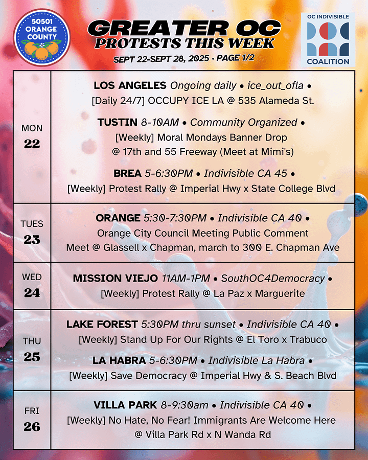 Greater OC Protests This Week (Sept 22 - Sept 28, 2025)