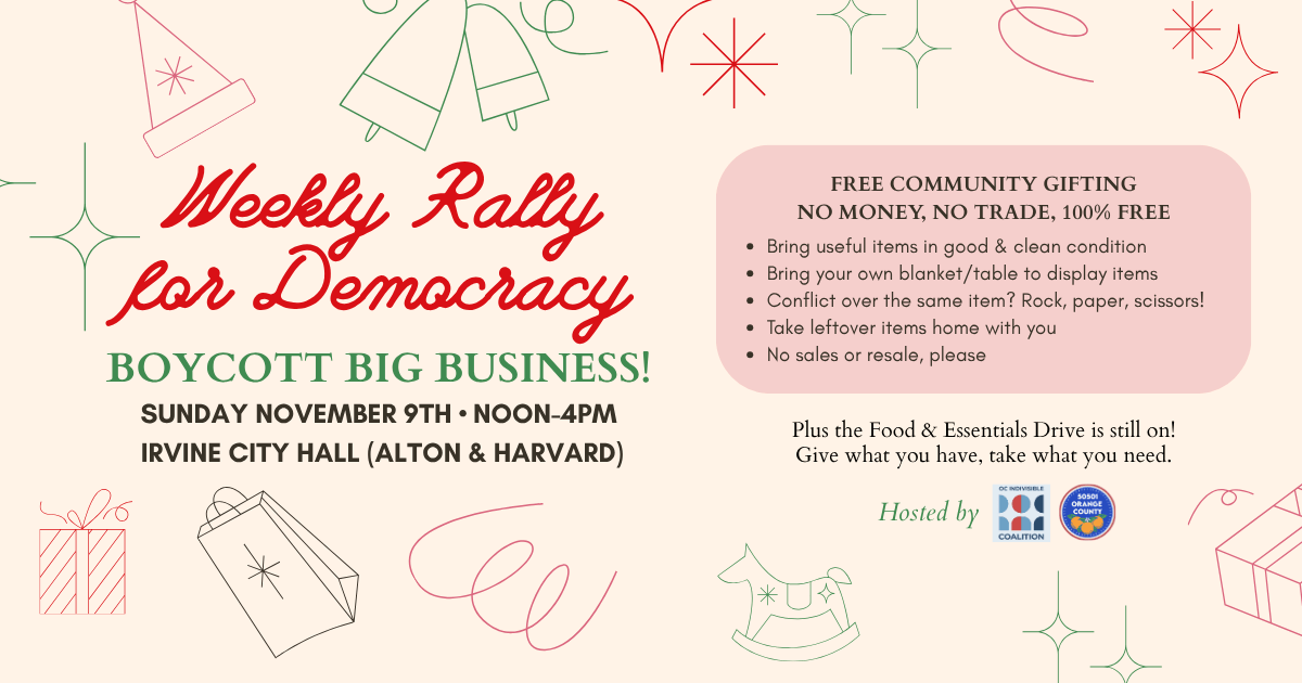 Weekend Update: Boycott Big Business at Irvine City Hall with our FREE GIFTING ACTIVITY!